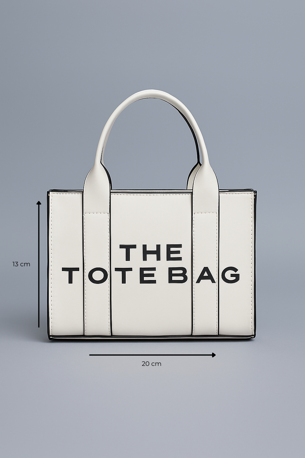 Simple, bold, and versatile — this structured white tote bag is the perfect everyday essential. Designed with sturdy top handles and a detachable long strap, it can be carried by hand or worn crossbody for extra convenience. The sleek black outline and statement “THE TOTE BAG” print make it a standout piece that matches effortlessly with any outfit.
